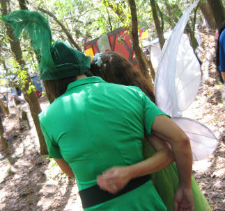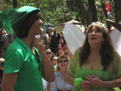far enough from the wedding gazebo (Also known as 'Fiddleworth Chapel'), that we really had to high-tail it there, lest our guests begin to wonder if we had chickened out! Of course that wasn't the case, but in the meantime our many friends had all arrived, each one bearing a minimum of one camera, and each with memory capacities suffient to impress even a Star Trek fan! While everyone waited, Cantiga played wonderful melodies fitting for any and all fairies present to feel elated. Indeed, Cantiga went many extra miles beyond all expectations for us. (You'll hear samples of them if